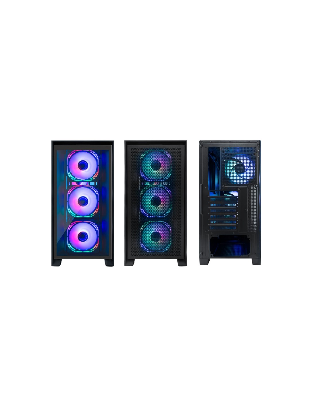 Incluye 1 ventilador trasero ARGB y 3 ventiladores frontales ARGB. Además, admite refrigeración líquida de 120 mm (parte posterior) o 240 mm / 280 mm / 360 mm en la parte superior y tiene soportes para 3 ventiladores en la parte inferior, 3 ventiladores en la parte superior y 2 ventiladores laterales, por lo que tener un PC Gaming de alta gama bien refrigerado con este chasis no será un problema.