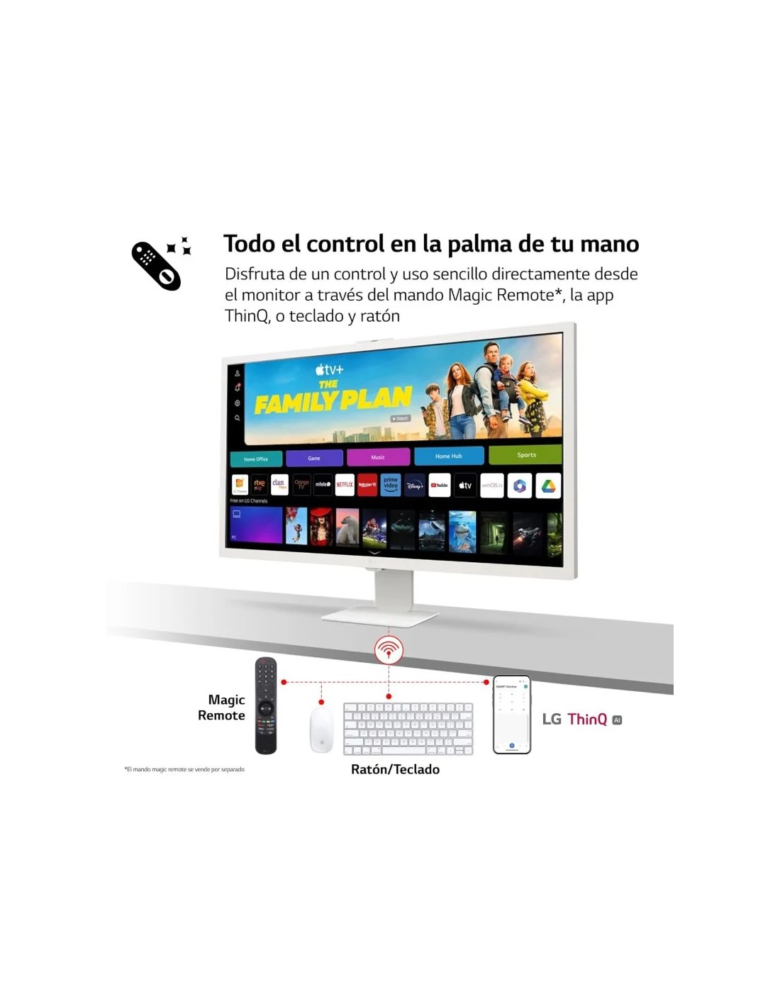Conectividad inalámbrica: Wi-Fi, Bluetooth, AirPlay 2, Screen Share, ThinQ Home