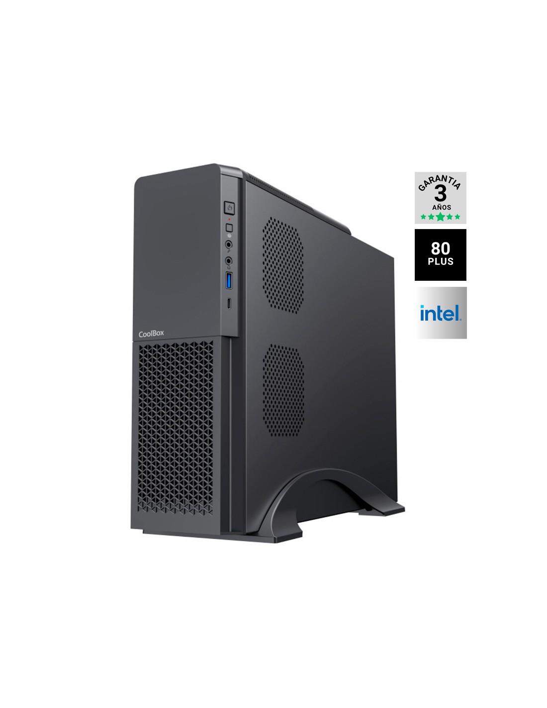 Procesador: Intel Core I3-12100 3.3Ghz, Memoria: DDR4 8GB 3200MHz, Disco duro: SSD M.2 500GB NVME, Fuente 300W 80% PLUS, Freedos, Caja SFF MATX COOLBOX T313 SLIM Negra. PRODUCTO SUJETO A CANON DE 5,33€ QUE SE APLICARA EN FACTURA.