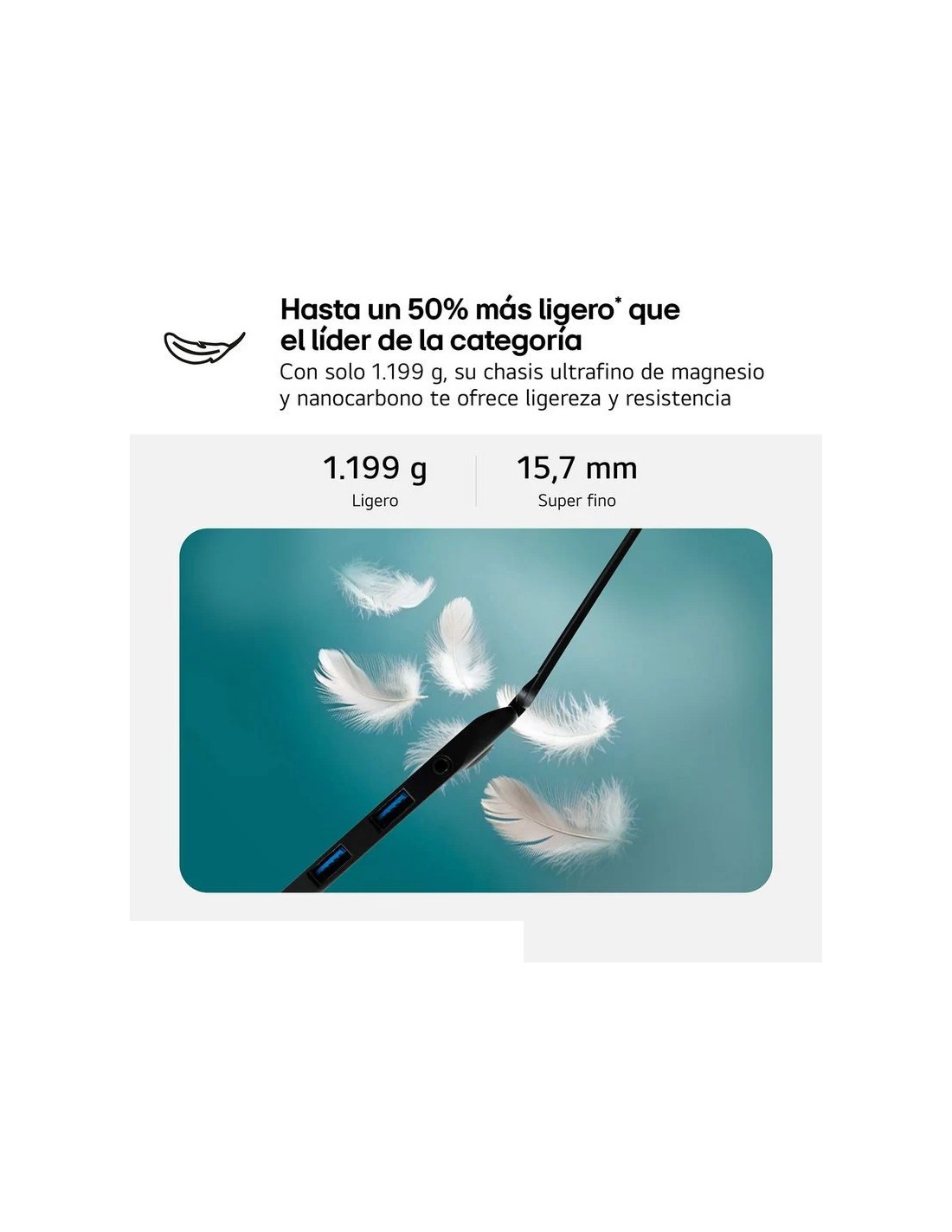El LG Gram 16ZD90T-G AX88B redefine la portabilidad profesional: su chasis de nano carbono y magnesio, con solo 1,2 kg de peso y 15,7 mm de grosor, lo convierte en el portátil ultraligero ideal para expertos en movilidad, creadores de contenido y usuarios avanzados. Equipado con el procesador Intel Core Ultra 7-255H de 16 núcleos y gráficos Intel Arc, ofrece un rendimiento sobresaliente en tareas de edición, modelado 3D, programación y multitarea intensiva. La pantalla IPS WQXGA de 16 pulgadas (2560 x 1600) con formato 16:10 y cobertura DCI-P3 del 99 % proporciona una experiencia visual profesional, ideal para fotografía, diseño gráfico y edición de vídeo. El tratamiento antirreflejos y los 350 nits de brillo garantizan una visualización nítida incluso en entornos luminosos. La autonomía es otro de sus puntos fuertes: hasta 22,5 horas de uso gracias a su batería de 77 Wh, permitiendo jornadas completas sin depender de enchufes. La conectividad de última generación incluye Wi-Fi 7, Bluetooth 5.3, puertos Thunderbolt 4, HDMI 2.1 y USB 3.2, cubriendo todas las necesidades de transferencia y expansión profesional.