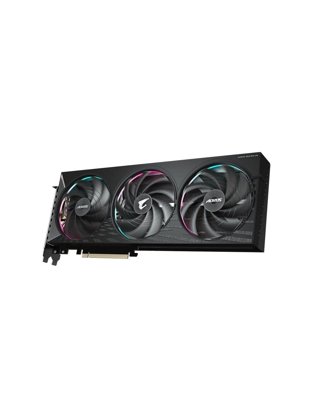El sistema de refrigeración WINDFORCE ofrece un rendimiento térmico excepcional mediante una combinación de tecnologías avanzadas. Incluye gel térmico de grado servidor, innovadores ventiladores Hawk con giro alterno, heatpipes compuestos de cobre, una placa de cobre, ventiladores activos 3D y disipación con diseño Screen Cooling. Surcando el universo AORUS, la luz icónica atraviesa el campo visual, mientras la velocidad extrema deja estelas que culminan en un símbolo verdaderamente único. El diseño se centra en intensos efectos de estela para transmitir una fuerte sensación de velocidad extrema en la cubierta frontal, con los efectos visuales convergiendo en los ventiladores. Combinado con una textura de superficie mate, la apariencia general adquiere un aura misteriosa pero dinámica.
