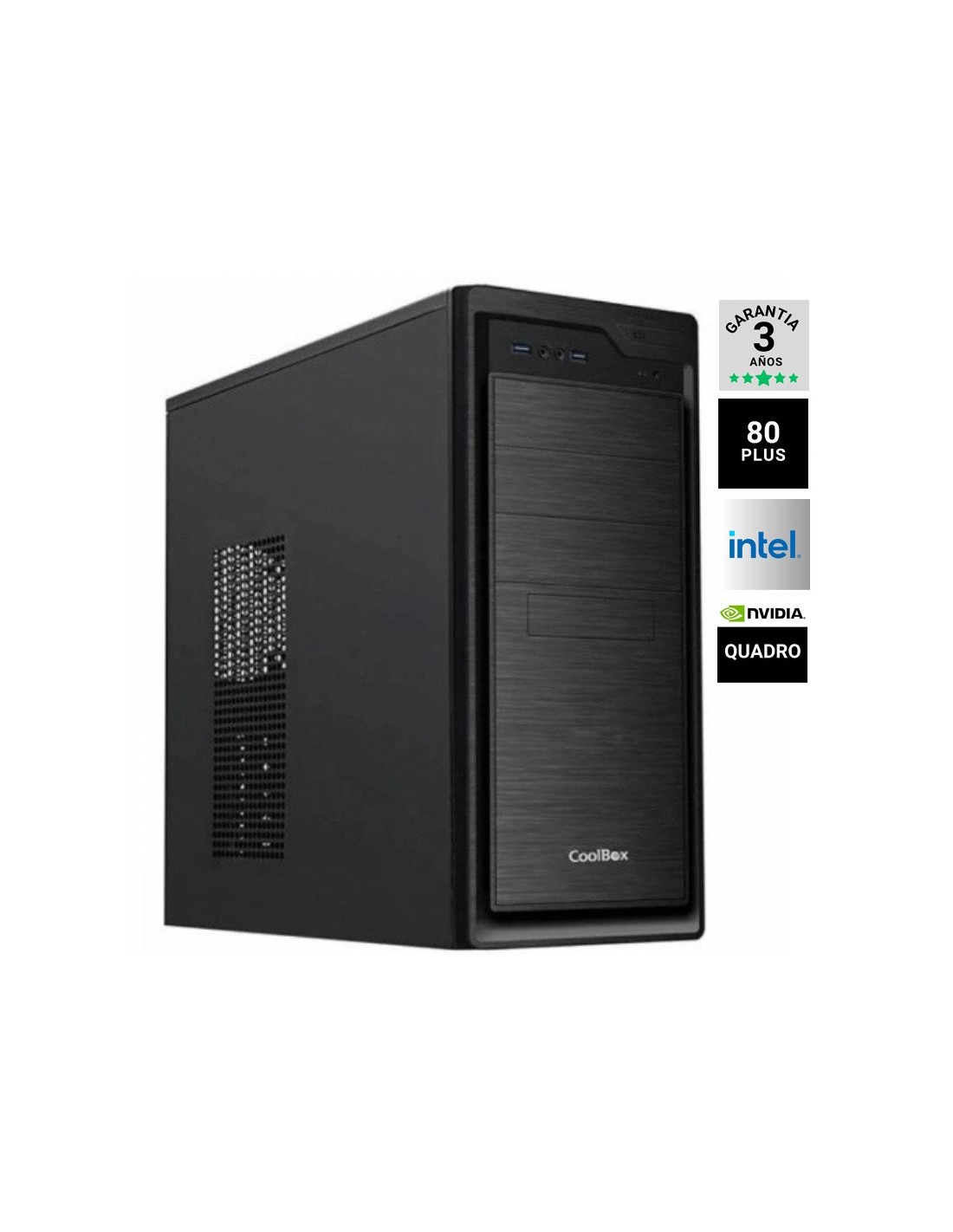 Procesador: Intel Core S-1700 I7-14700F 2.1Ghz, Memoria: DDR4 16GB 3200MHZ, Disco duro: SSD M.2 1TB NVME, VGA: Nvidia QUADRO RTX A1000 AMPERE 8GB, Fuente 750W/62.5A 80 PLUS BRONZE NEBRO, Freedos, Caja Semitorre ATX COOLBOX F800 Negra. PRODUCTO SUJETO A CANON DE 5,33€ QUE SE APLICARA EN FACTURA.